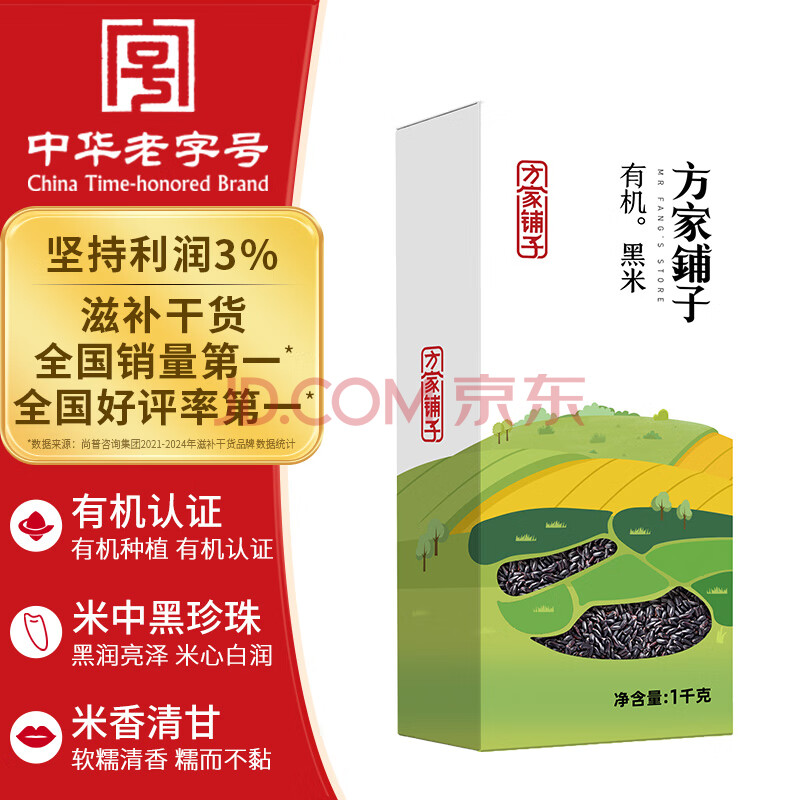 商品相册:方家铺子中华老字号 有机黑米2斤 五谷杂粮米 无染色 粗粮第