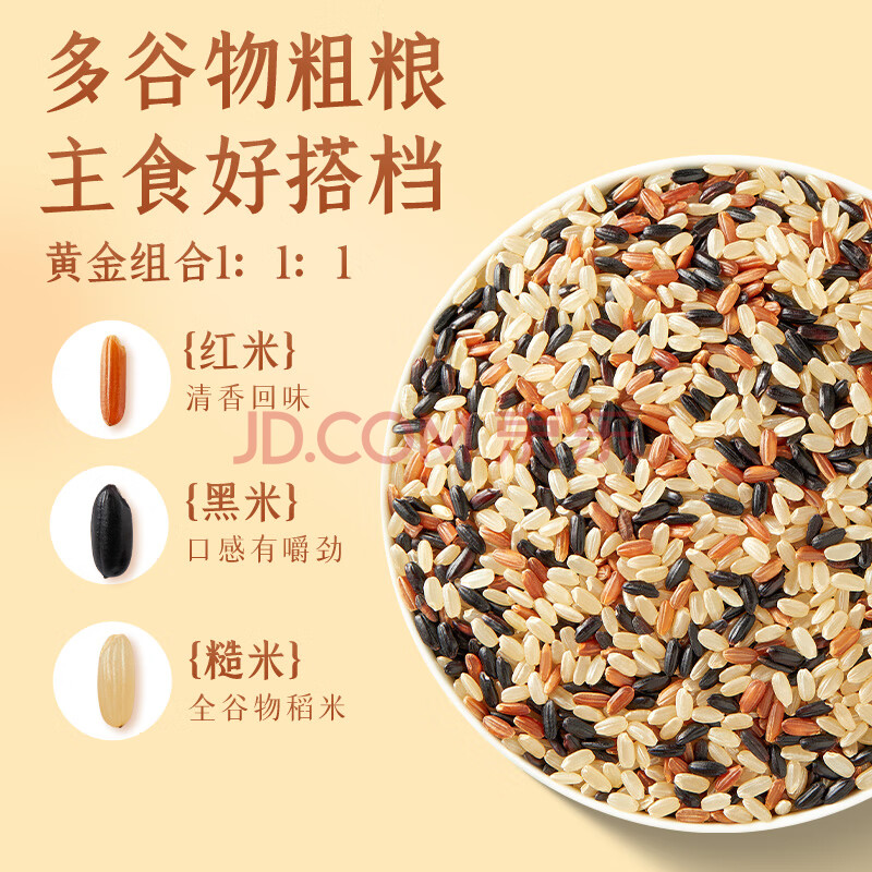 商品相册:十月稻田 三色糙米 2斤 五谷杂粮米 粗粮饭主食 新米 糙米粥 黑米 红米第