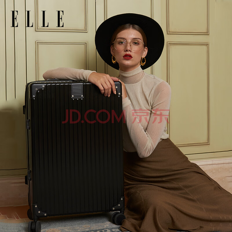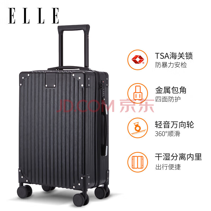 商品相册:ELLE法国20英寸黑色拉杆箱时尚行李箱万向轮旅行箱密码锁拉链密码箱第