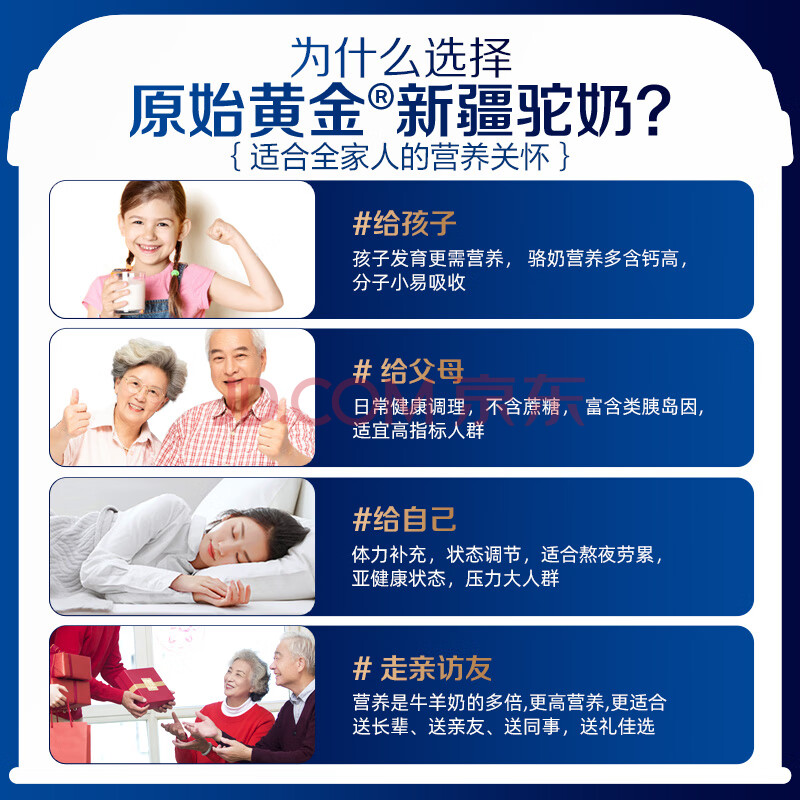 商品相册:原始黄金新疆骆驼奶粉330g*6罐益生菌无蔗糖驼乳粉高钙儿童成人正品礼盒第