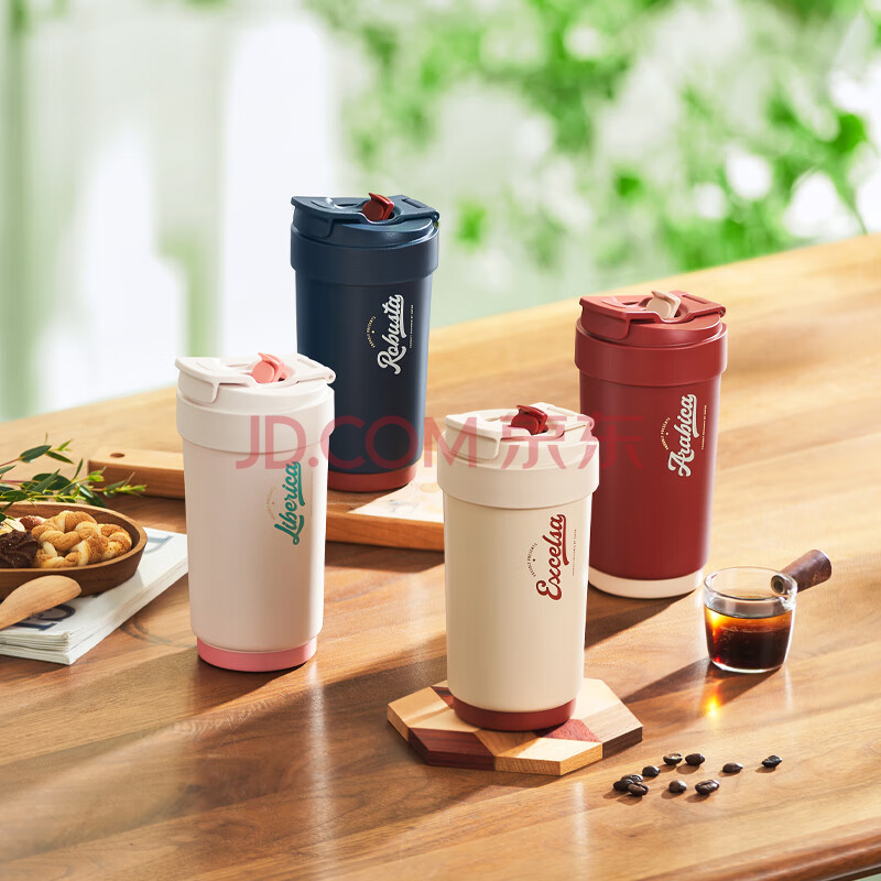 商品相册:苏泊尔(SUPOR)双层陶瓷覆层内胆吸管保温便携水咖啡杯子450mL摩登红KC45KR10第