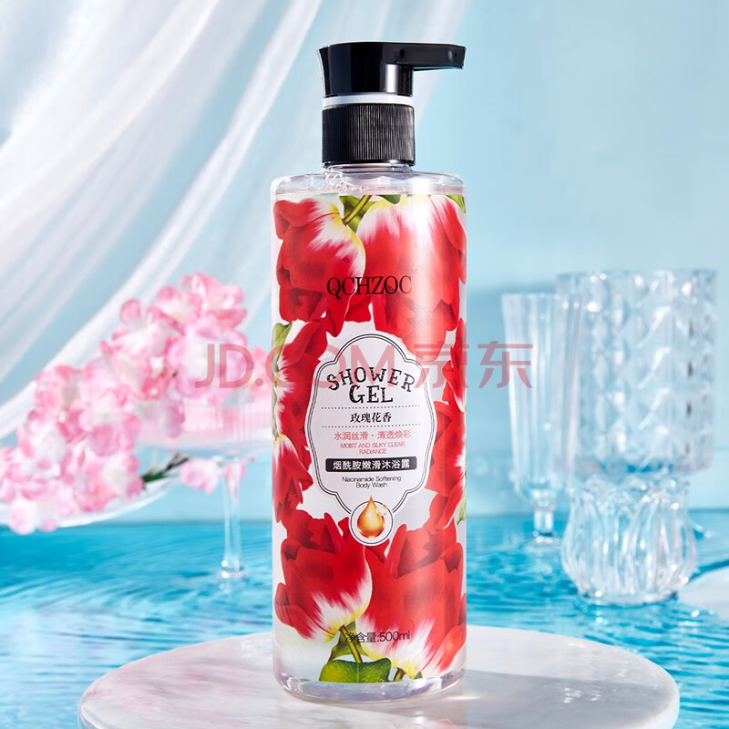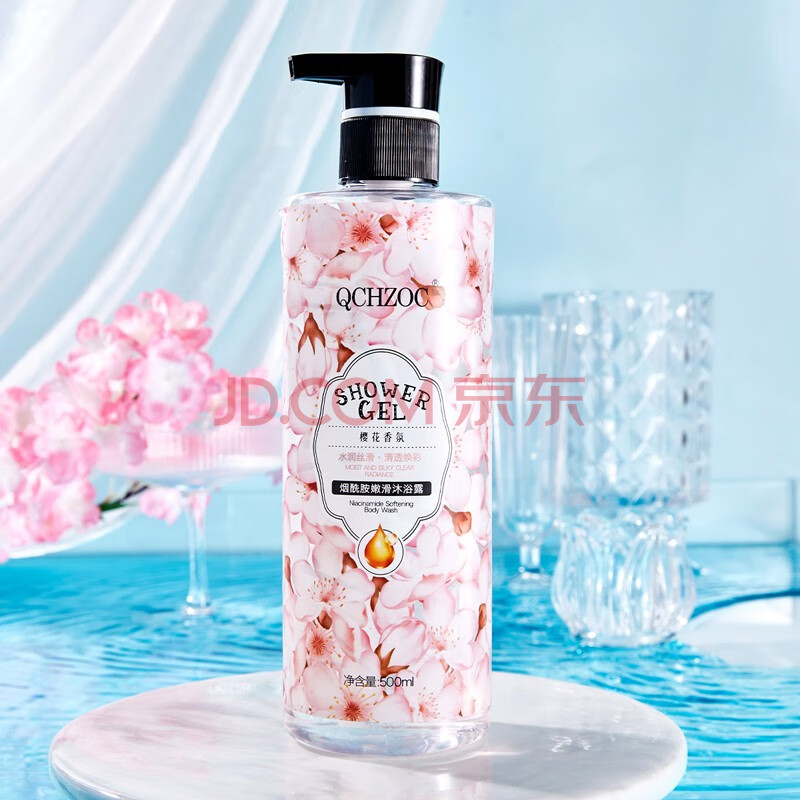 商品相册:QCHZOC花香系列烟酰胺亮肤滋润沐浴露(500ML蓝风铃沐浴露+500ML樱花沐浴露+500ML玫瑰沐浴露)第