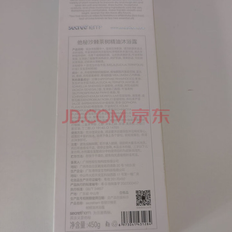 商品相册:他秘secrethem沙棘茶树精油沐浴露沐浴乳男女士通用清洁沐浴液450ml 第