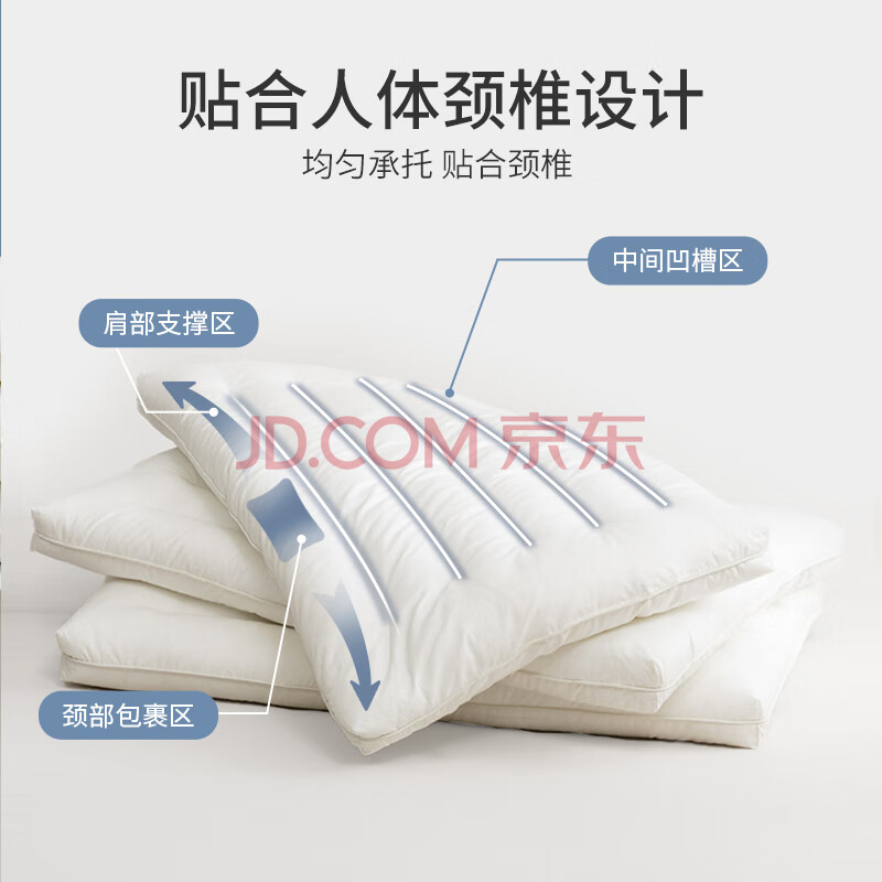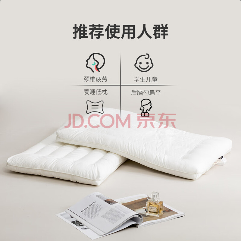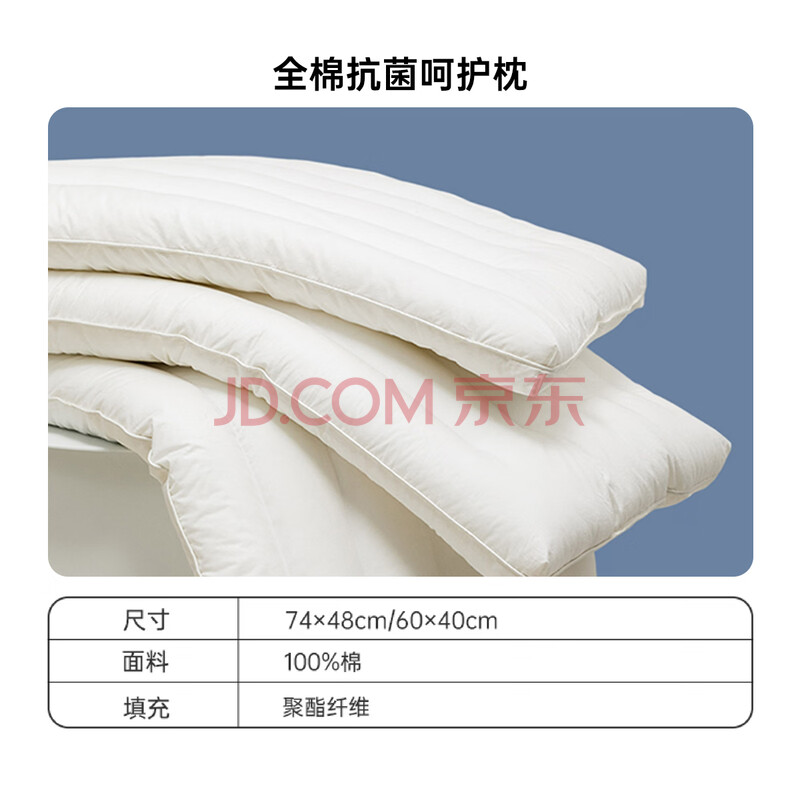 商品相册:多喜爱枕头 抗菌全棉成人家用舒适护颈可水洗软枕头芯 低枕单只74×48cm第