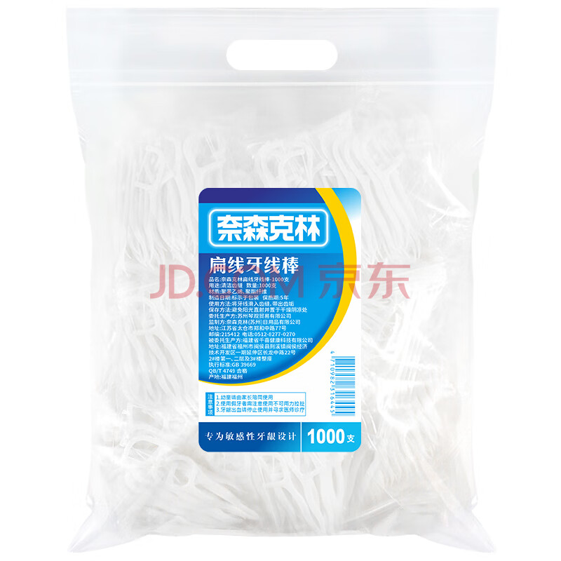 商品相册:奈森克林 扁线牙线棒 家庭装便携清洁齿缝 1000支*1袋第1张/共3
