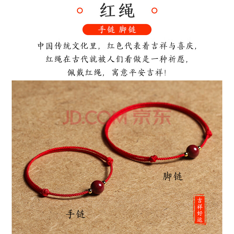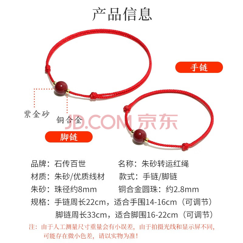 商品相册:石传百世朱砂手串本命年红绳手链转运珠护身符手绳情侣手链脚链第