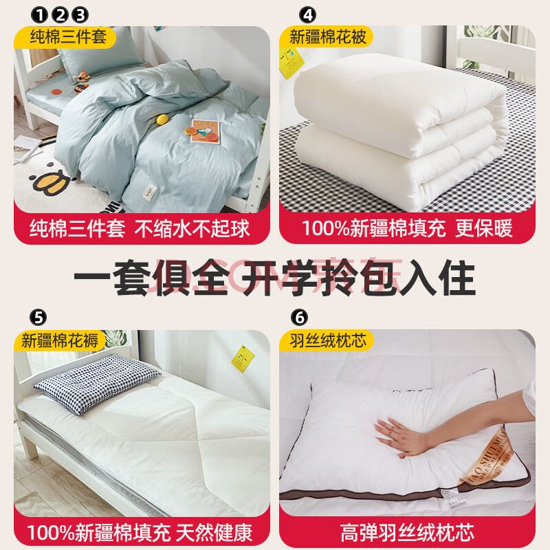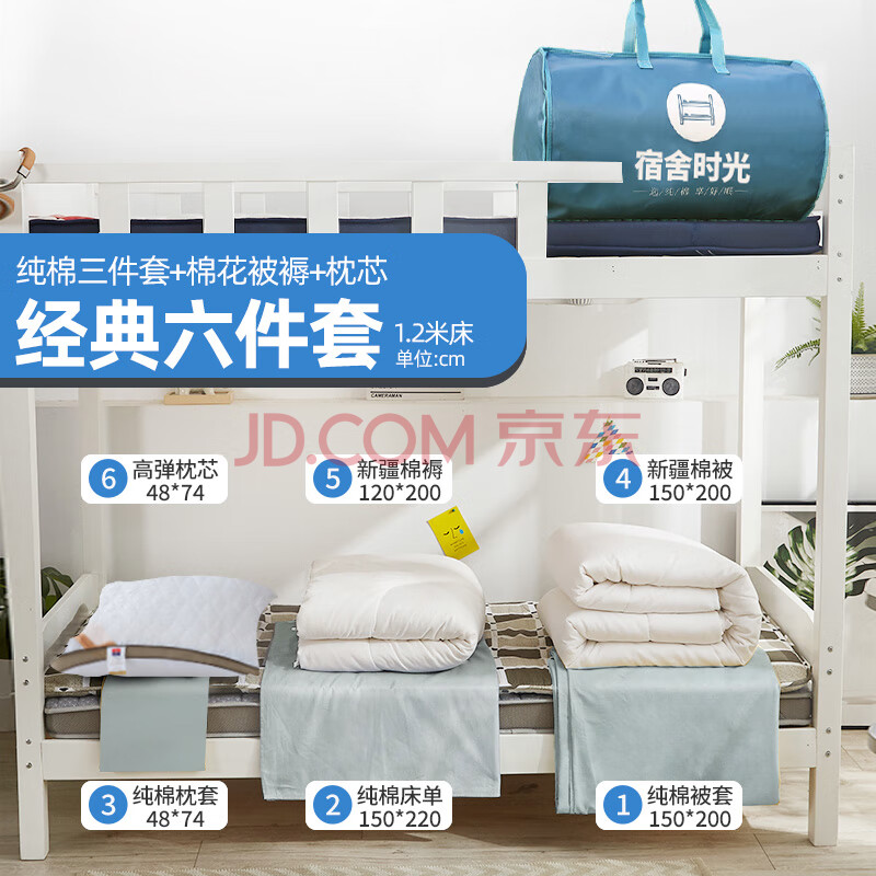 商品相册:梦诗娜全棉宿舍六件套床上用品单人被褥套装被子褥子全套1.2米梵星蓝第
