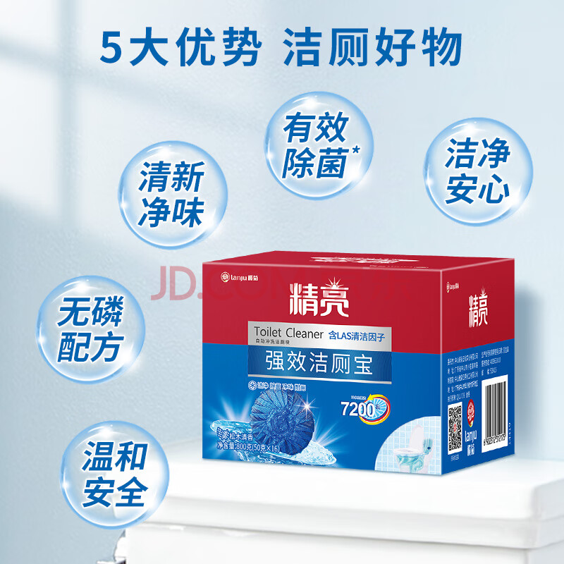 商品相册:榄菊除菌洁厕宝50g*16块 蓝泡泡洁厕块除垢洁厕灵去异味马桶清洁剂第