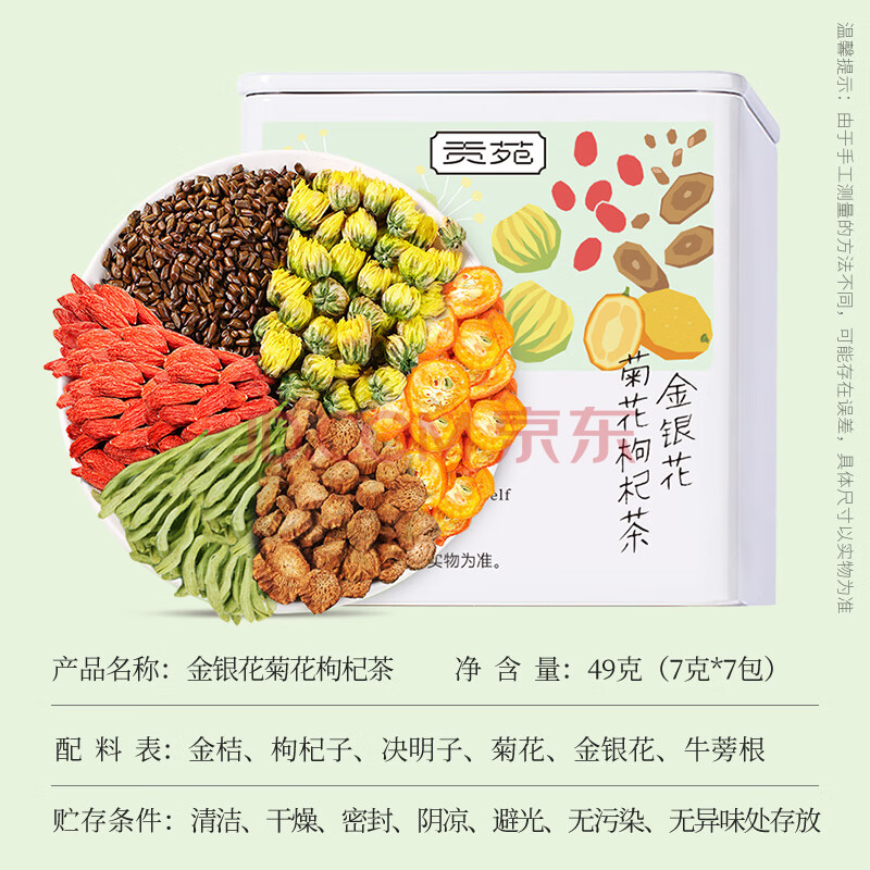 商品相册:贡苑【整料】菊花枸杞决明子茶 金银花茶养生肝护搭胎菊降熬夜火49g第