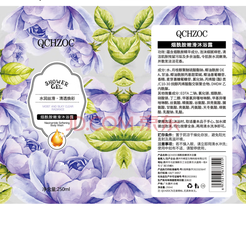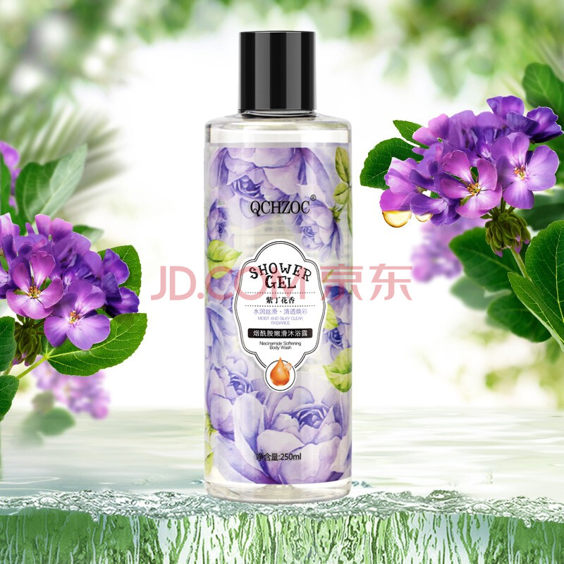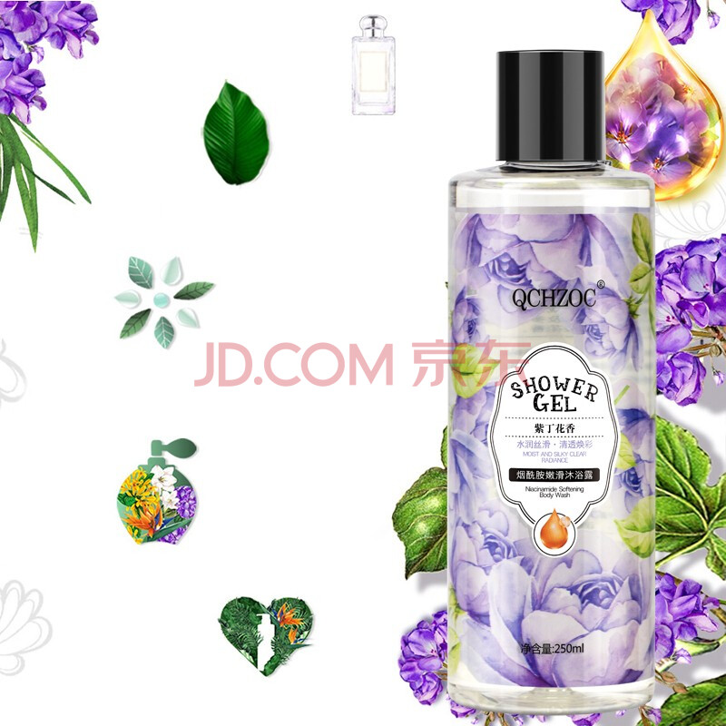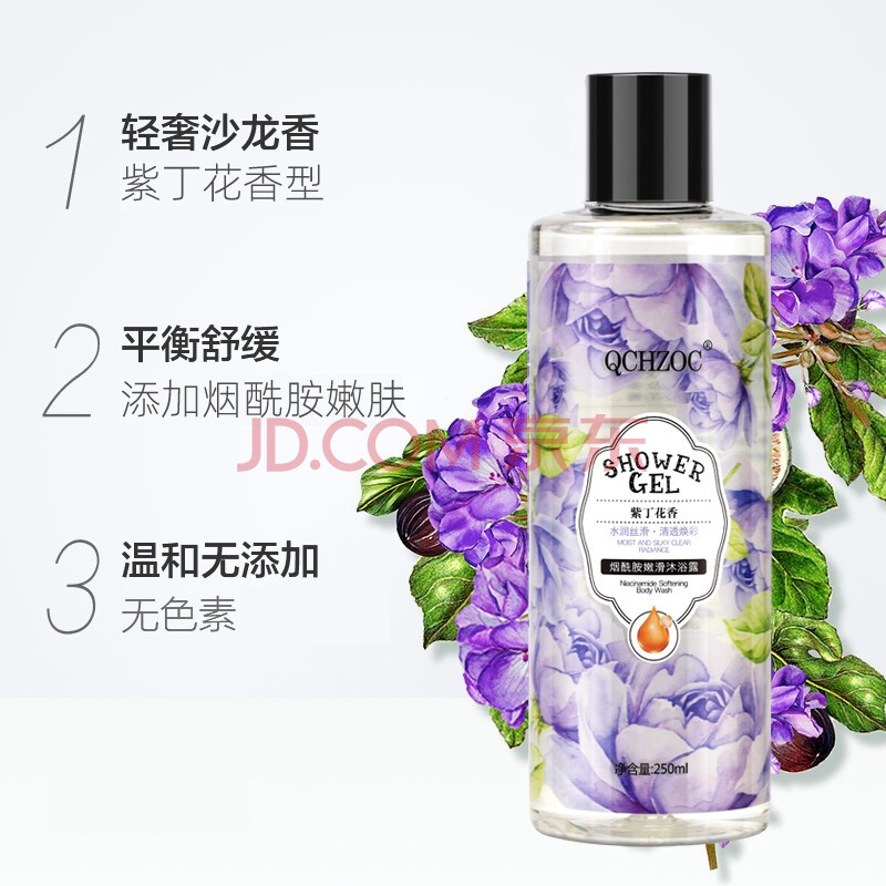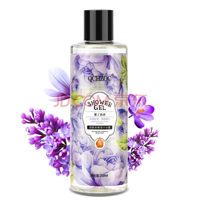 商品相册:QCHZOC紫丁花花香滋养嫩肤烟酰胺亮肤植萃香氛沐浴露250ml第
