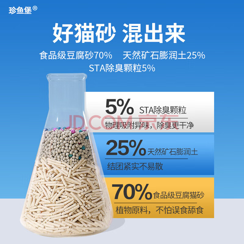 商品相册:珍鱼堡 猫砂混合20斤豆腐膨润土除臭祛味低尘次日达大包装细砂第