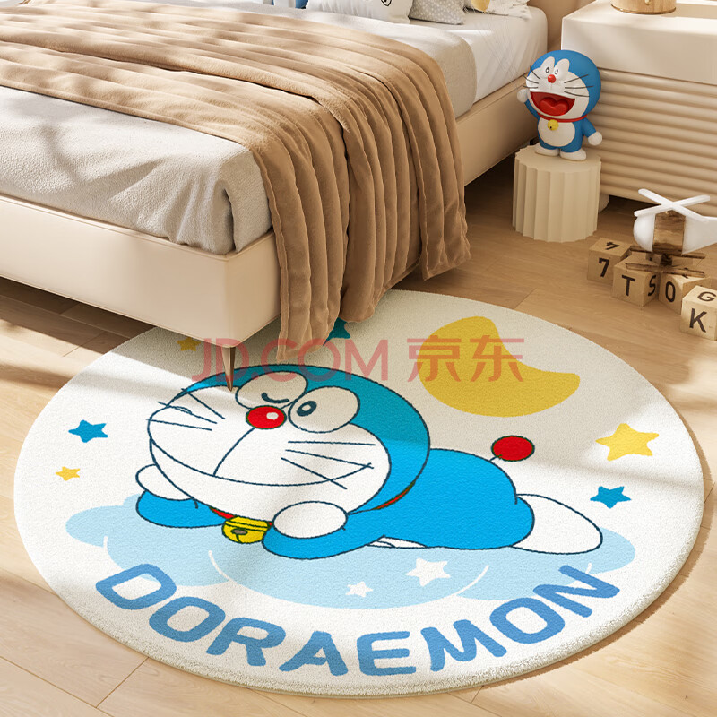 商品相册:大江哆啦A梦正版联名卧室床边地毯圆形儿童房间床前地毯100x100cm第