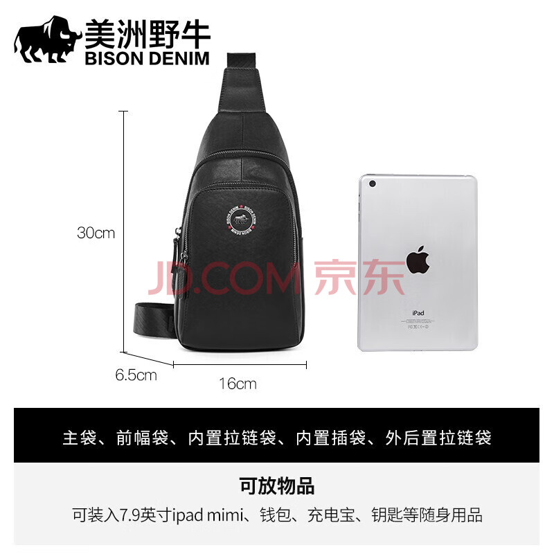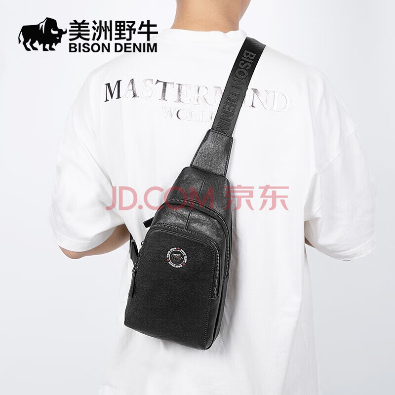 商品相册:美洲野牛背包男单肩包头层牛皮斜挎包立体logo胸包男士包生日礼物送男友第