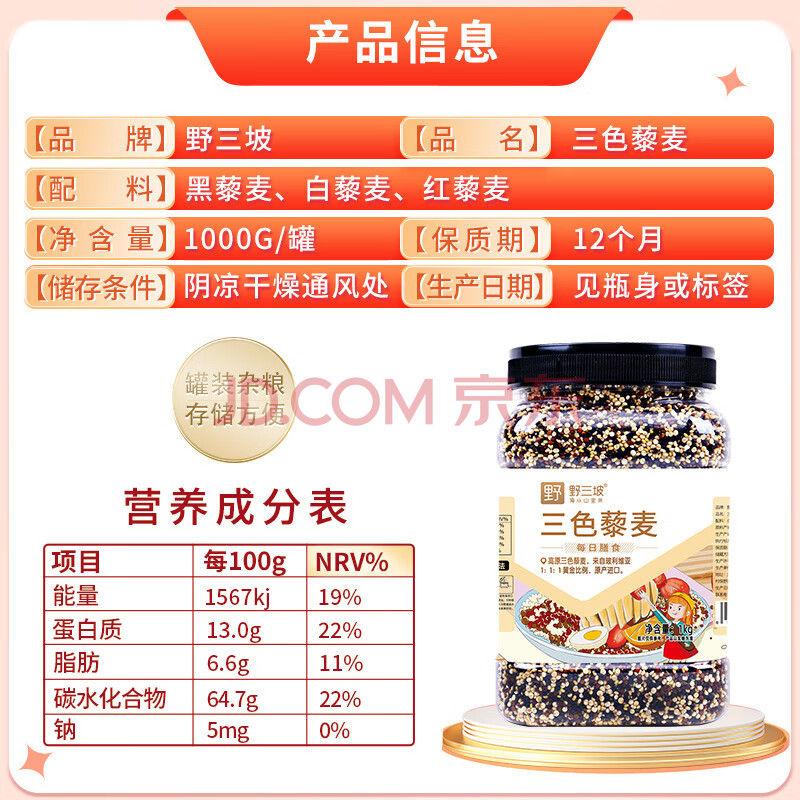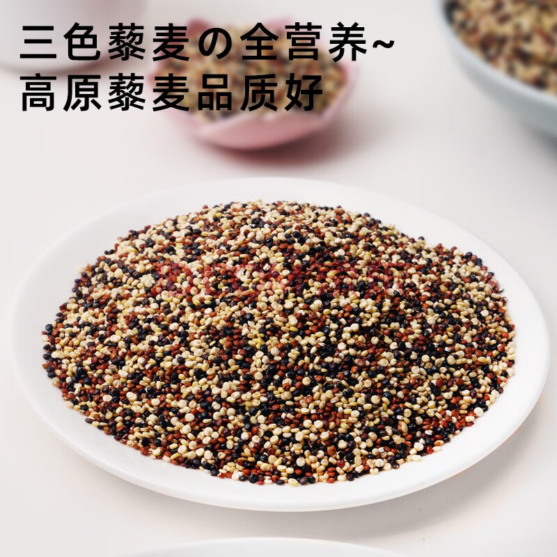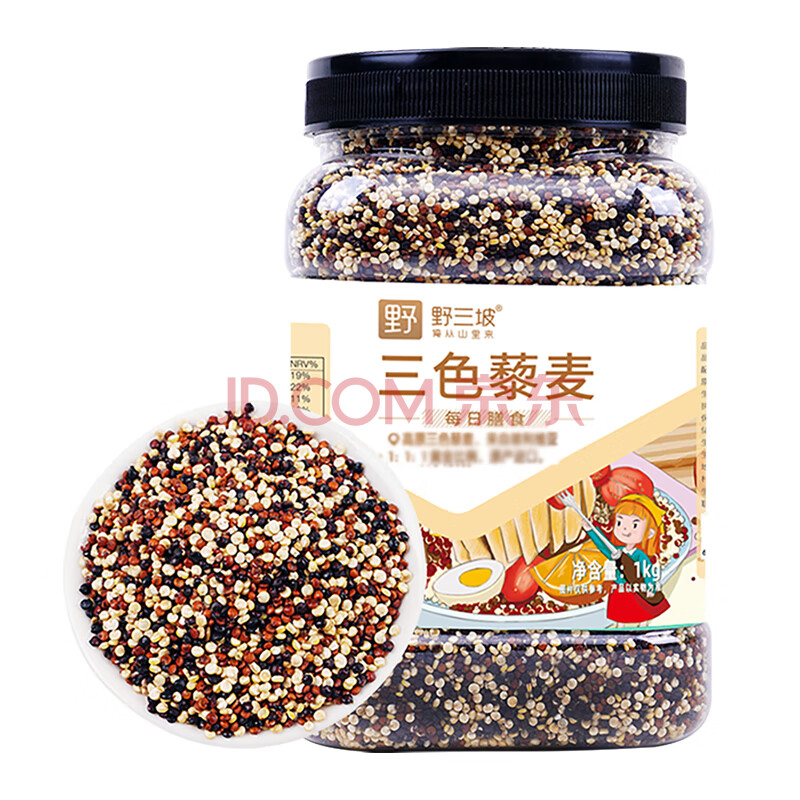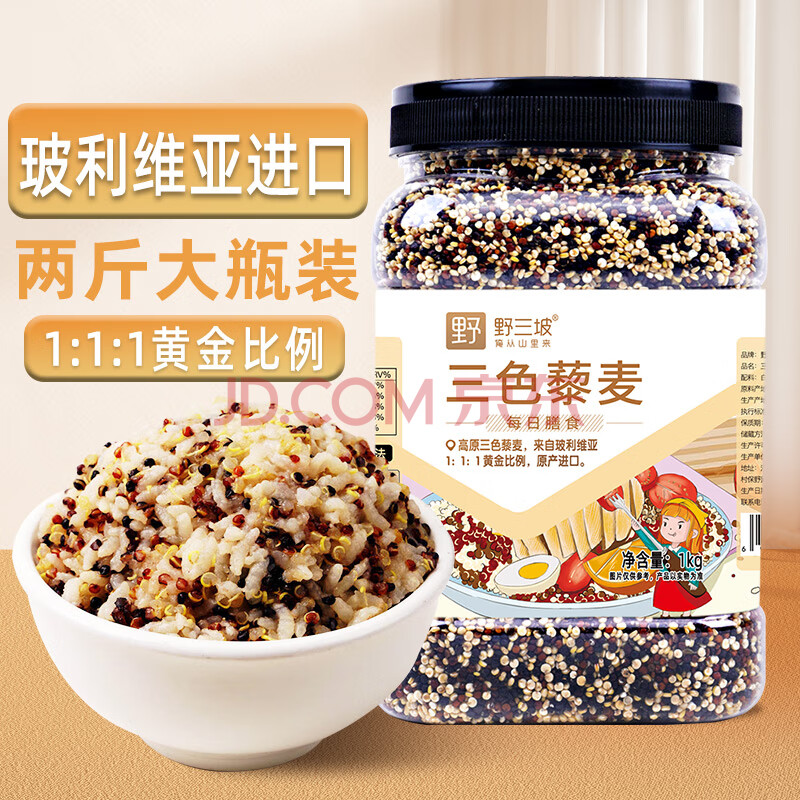 商品相册:野三坡三色藜麦米2斤轻食 五谷杂粮 大米伴侣 粥米搭档 瓶装罐装 )第