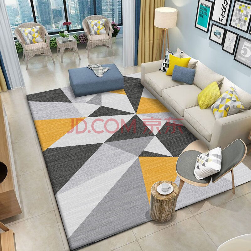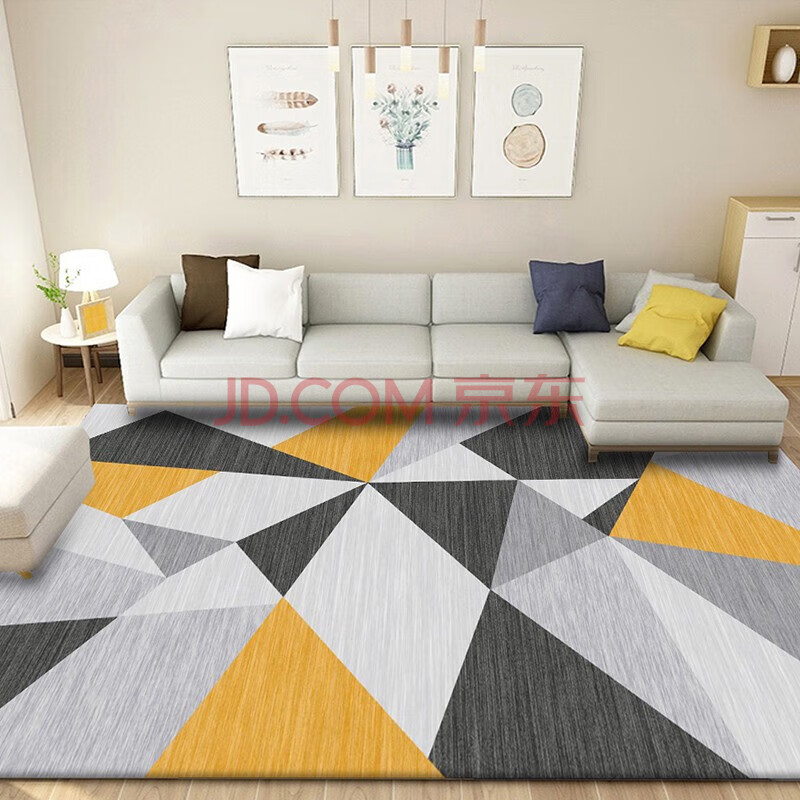 商品相册:梦蜓水晶绒客厅地毯 亲肤舒适耐脏防滑 几何黄 现代简约 160*230cm第