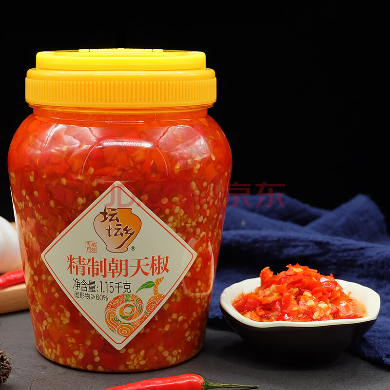 商品相册:坛坛乡 湖南特产 精制朝天椒 辣椒酱 1.15kg 剁椒下饭拌饭拌面调味酱第