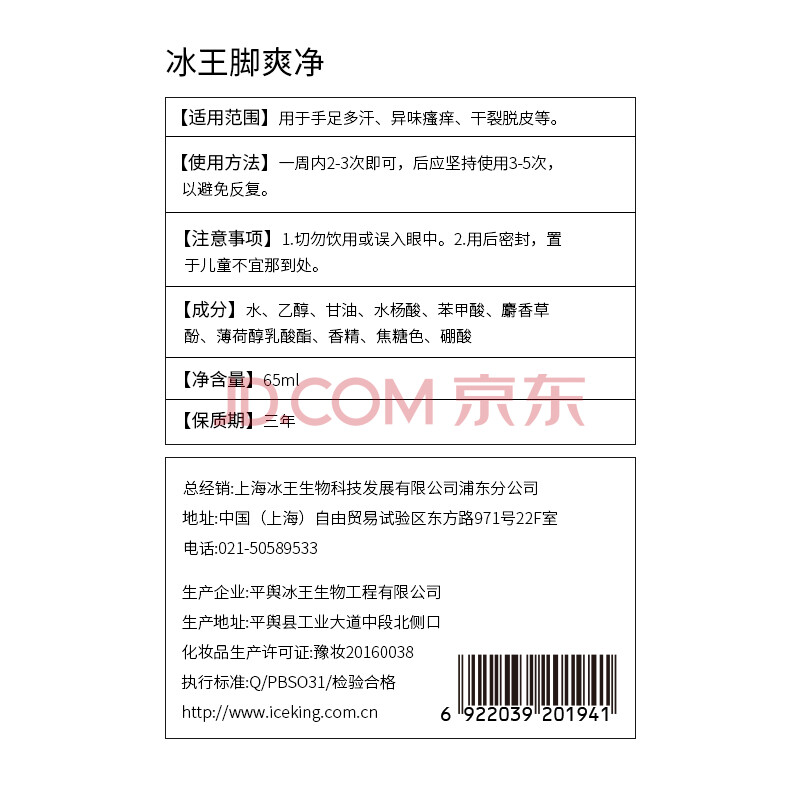 商品相册:冰王脚爽净脚臭喷剂65ml汗脚脱皮脚汗水泡型止汗脚痒喷雾第