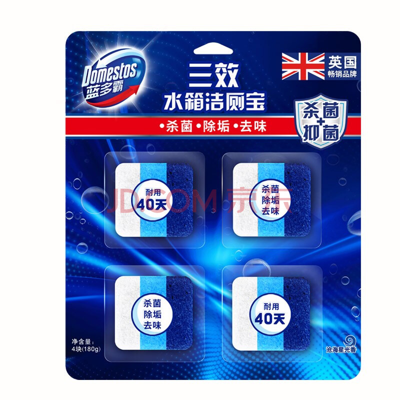 商品相册:蓝多霸三效水箱洁厕宝 杀菌除垢祛除异味180g (新老包装交替发货)第