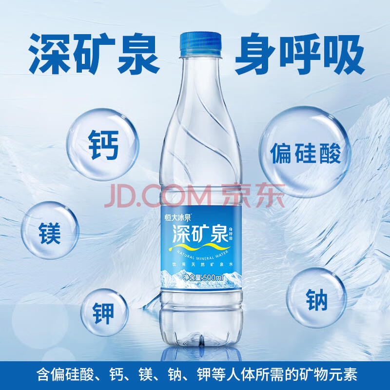 商品相册:恒大冰泉 深矿泉饮用天然矿泉水 500ml*24瓶 整箱装 非纯净水热门商品第