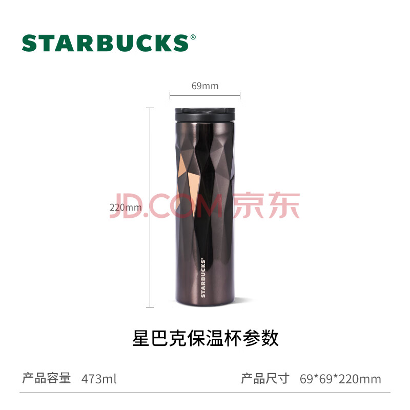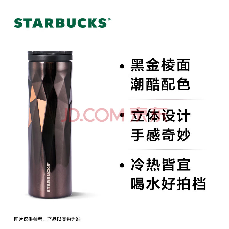 商品相册:星巴克(Starbucks)经典黑金棱面不锈钢保温保冷杯473ml桌面保冷杯女神节礼物第