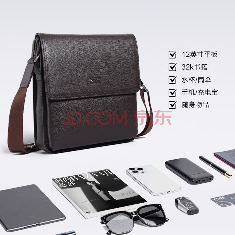 商品相册:七匹狼单肩斜挎包男士真头层牛皮便携高端磁吸挎包商务休闲生日礼物男第
