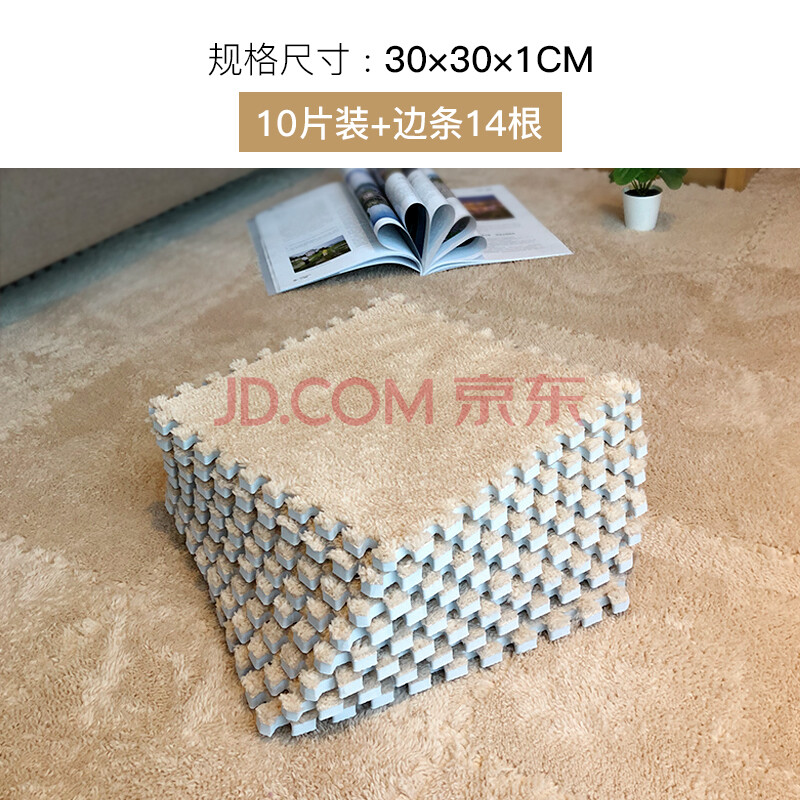 商品相册:foojo毛绒方块拼接地毯 客厅卧室满铺隔音隔凉防滑30cm10片装驼色第