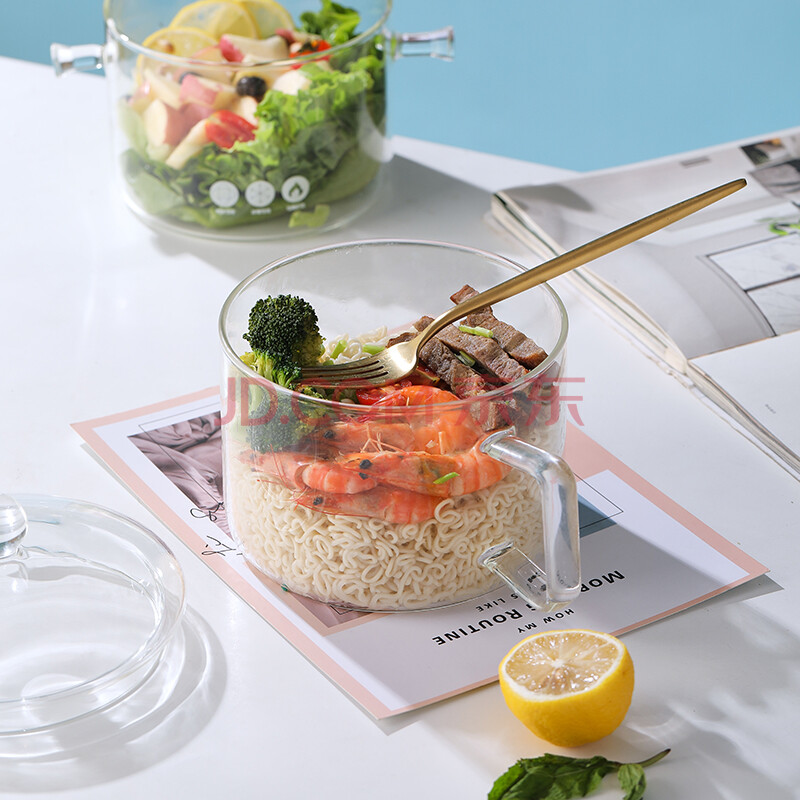 商品相册:唯铭诺高硼硅玻璃家用碗1500ml耐高温泡面锅煲汤锅玻璃锅 单把手玻璃碗第