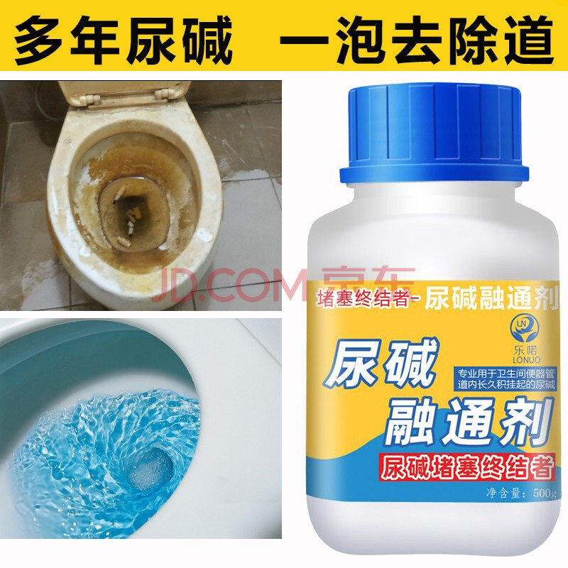 商品相册:乐喏 尿碱溶解剂厕所马桶清洁剂溶通剂除垢堵塞去黄水碱水垢锈迹500g第1张/共4