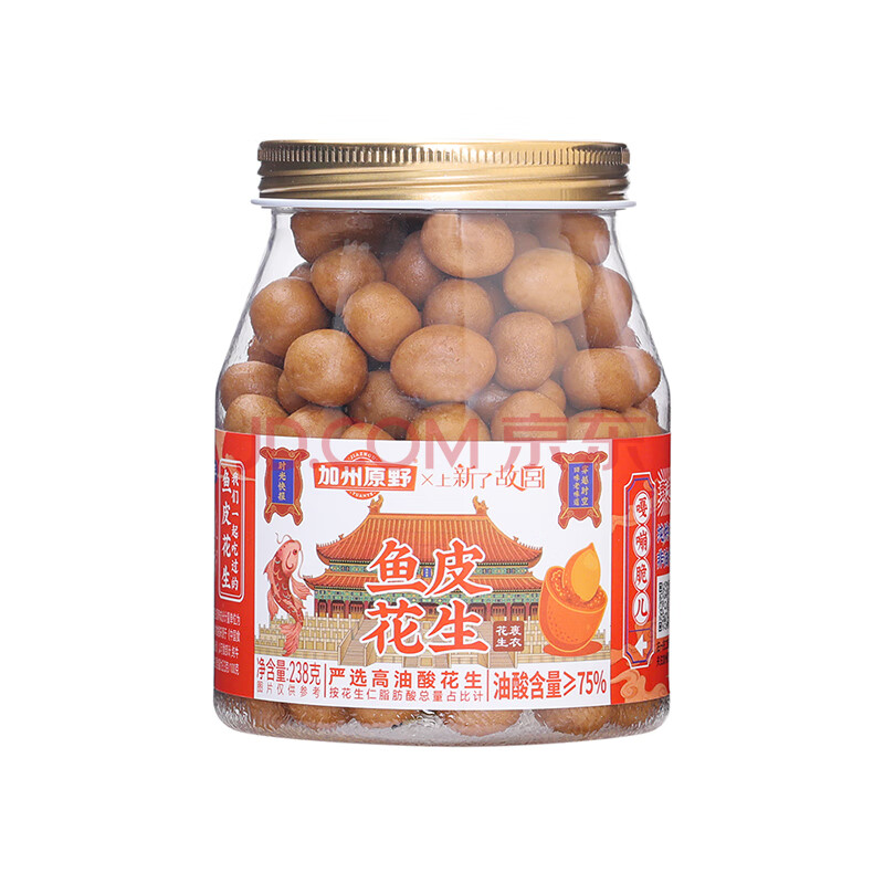 商品相册:加州原野鱼皮花生238g/罐 自营坚果炒货高油酸纯烘烤非油炸上新了故宫联名第