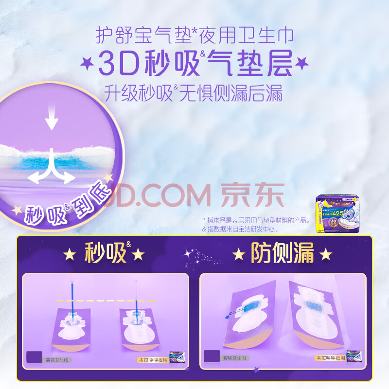 商品相册:护舒宝考拉呼呼超长夜用卫生巾425mm12片姨妈巾试用京东自营官方旗舰第