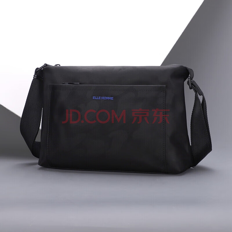 商品相册:ELLE HOMME男士单肩包 迷彩尼龙帆布斜挎包 防泼水时尚休闲手机包大容量男包EA188203230黑色生日礼物送男友第