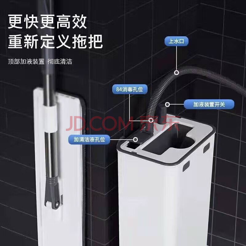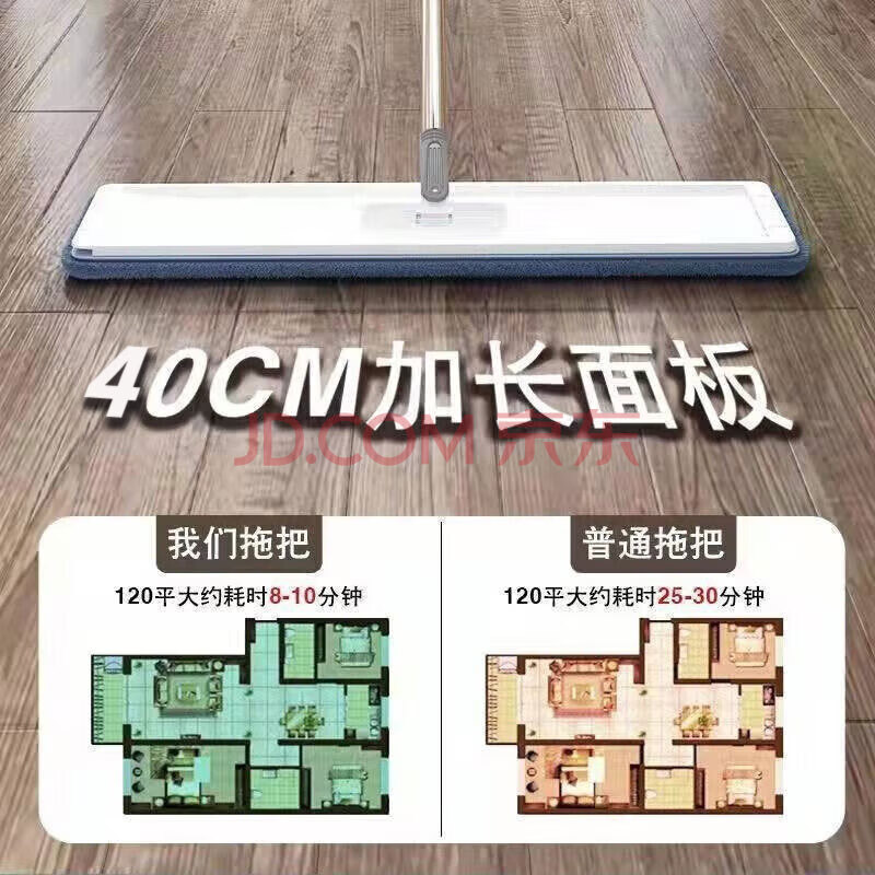 商品相册:侑家良品平板拖把40CM杆长135CM共3布家用一拖净免手洗带桶洗衣机拖把套装第