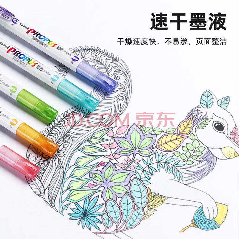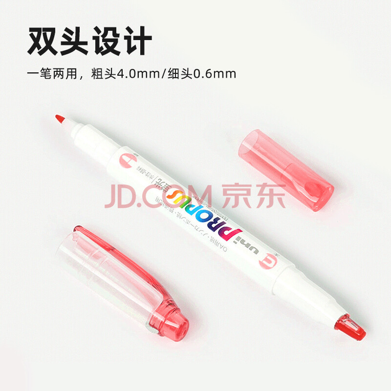 商品相册:uni三菱浅色荧光双头记号笔(细0.6mm/粗4mm)可视窗 学生重点标记 PUS-102T 1支/袋 樱红第