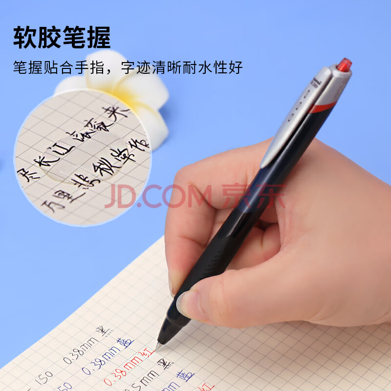 商品相册:uni三菱 JETSTREAM系列按动原子笔SXN-150 顺滑学生办公用圆珠笔0.38mm 黑杆红芯 5支装第