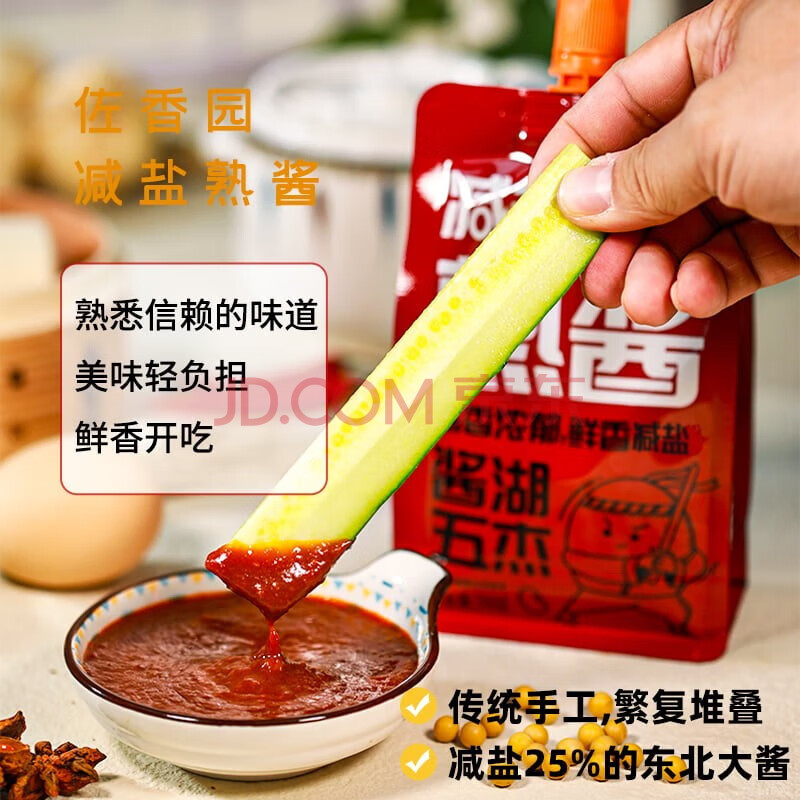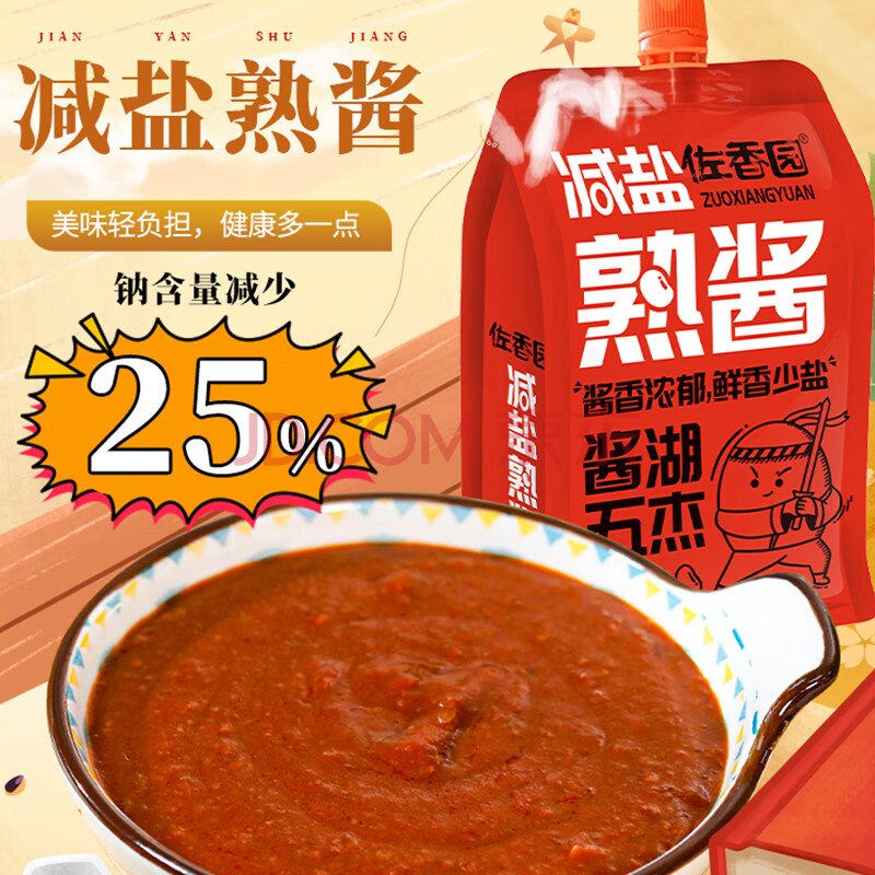 商品相册:佐香园熟酱 黄豆酱360g 【减盐】东北农家大酱 拌饭炒菜酱 非转基因大豆第