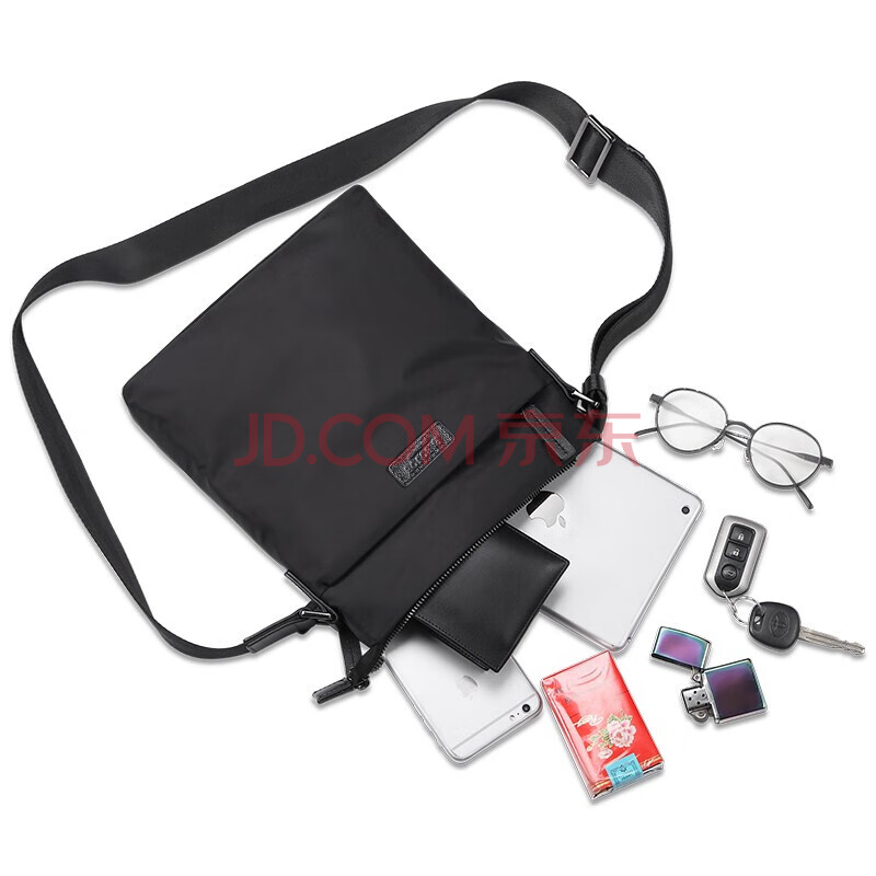 商品相册:派保爵pabojoe男包单肩斜挎包防泼水尼龙复合帆布配牛皮轻便竖款单肩包第