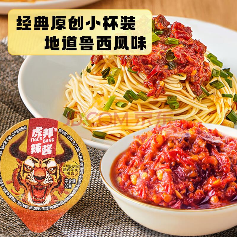 商品相册:虎邦辣椒酱 鲁西牛肉辣酱30g*6杯小包装小罐下饭菜拌饭拌面酱火锅蘸料第