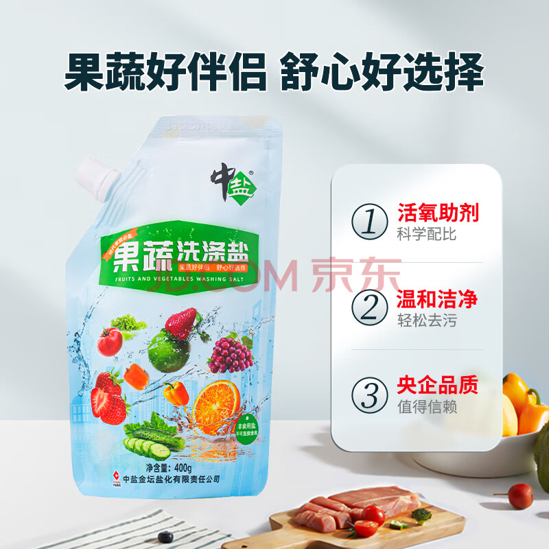 商品相册:中盐 果蔬洗涤盐400g【食品级 去污】 去农残 果蔬伴侣 清洁去味 第