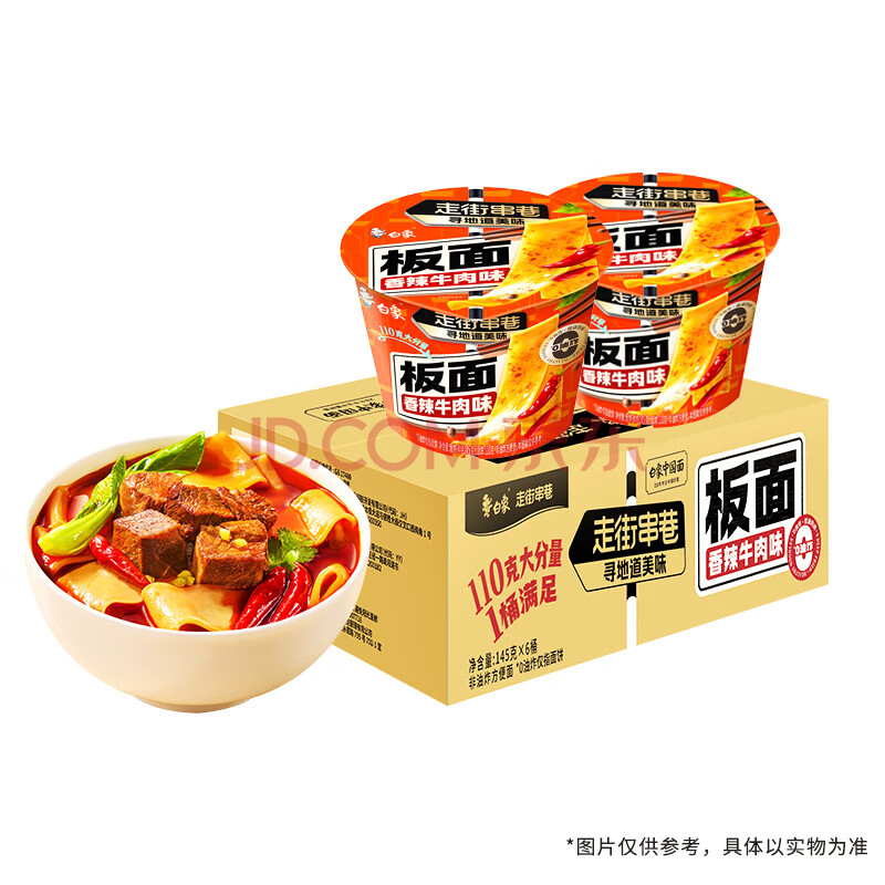 商品相册:白象 方便面 走街串巷香辣牛肉板面145g*6桶整箱装泡面第
