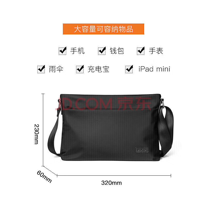 商品相册:POLO 单肩包男士商务斜挎包运动邮差包休闲iPad包横款运动挎包手机包第