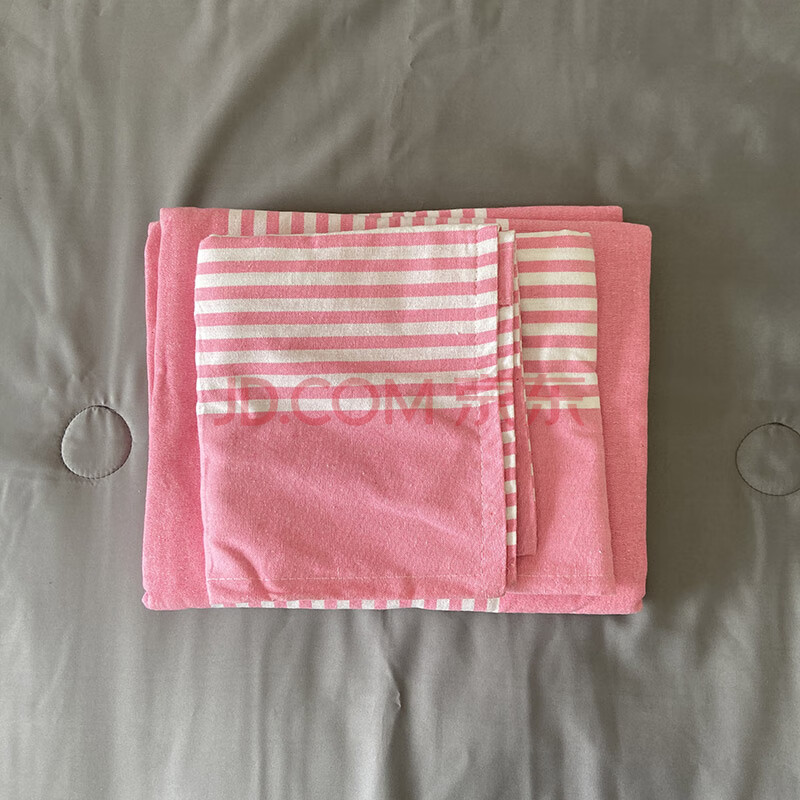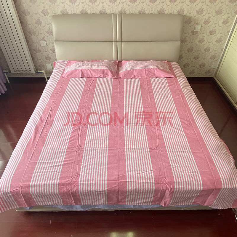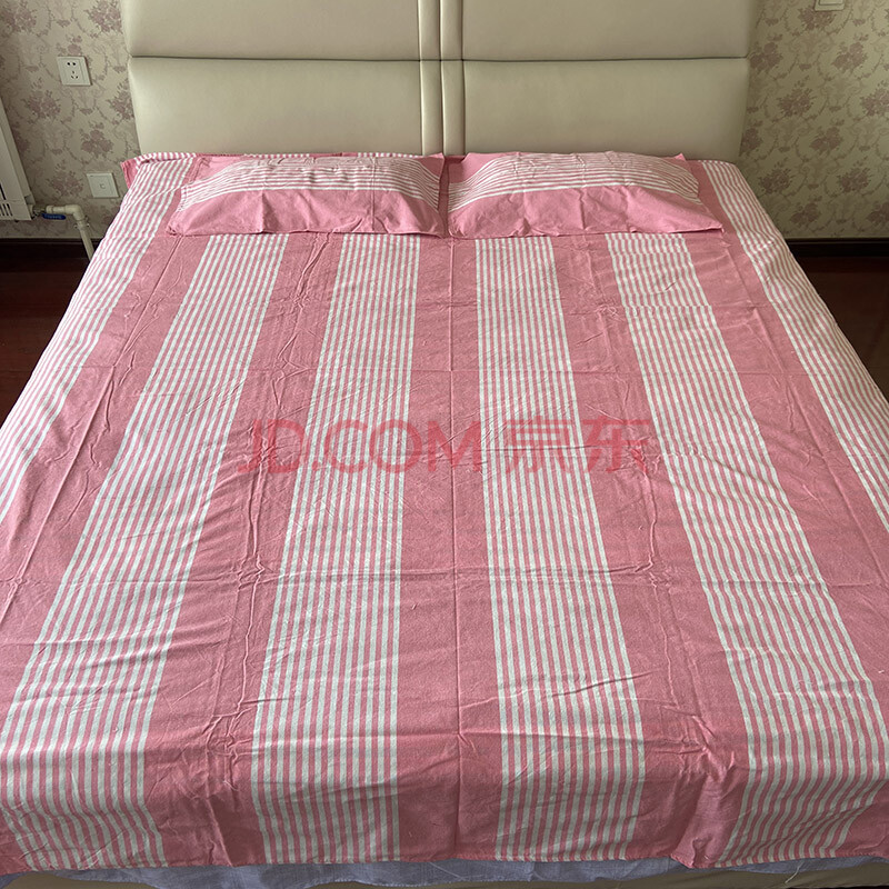 商品相册:鲁凤来 .老粗布三件套 双人床加厚床单+枕套一对 200*230cm床单 粉白条第