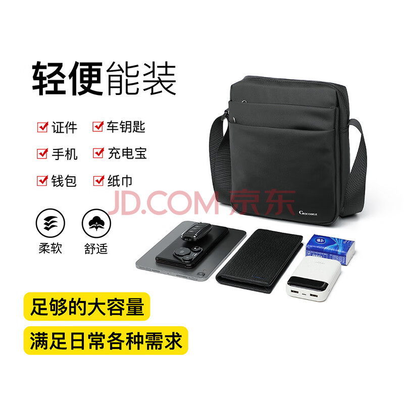 商品相册:鳄鱼恤男士单肩男包包休闲竖款斜挎百搭日字布包3057送男友第