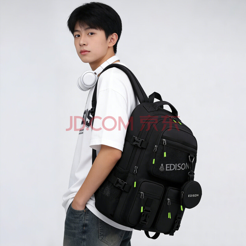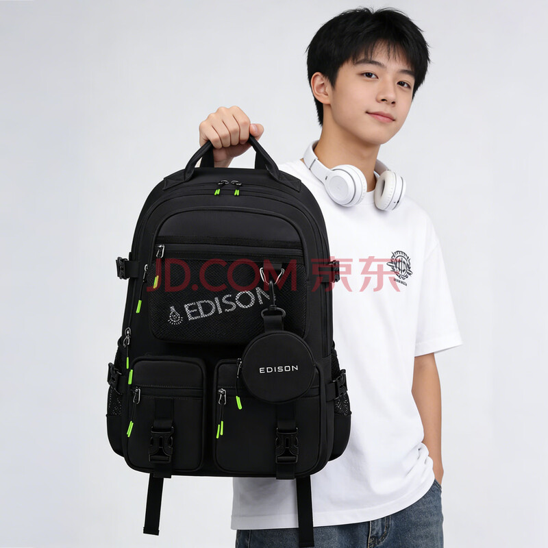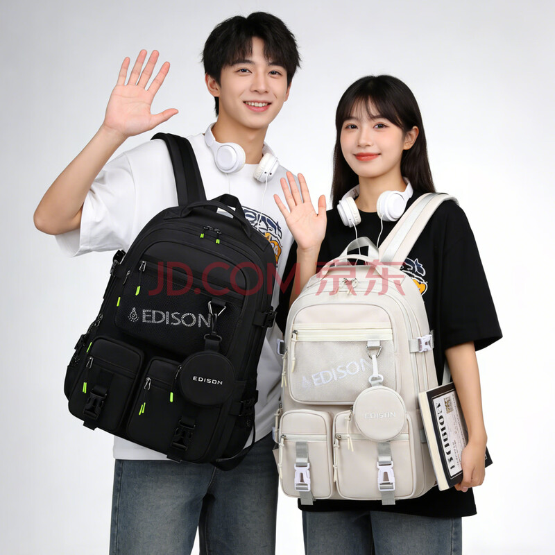 商品相册:Edison爱迪生高中生书包护脊大容量防泼水双肩包初中生旅行背包K2272-1第