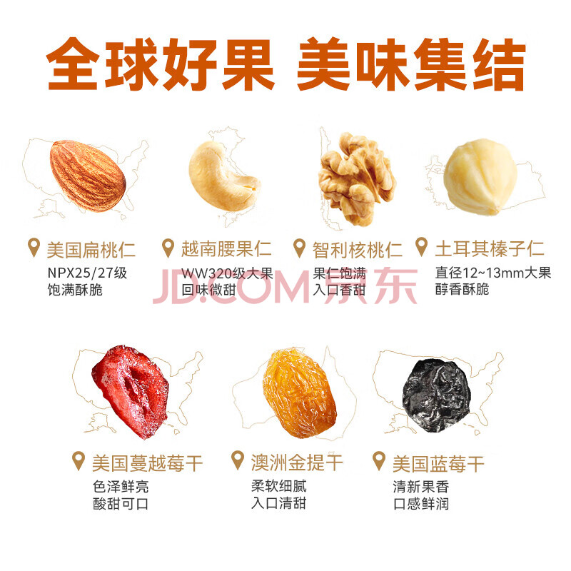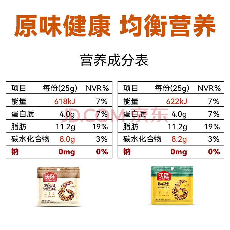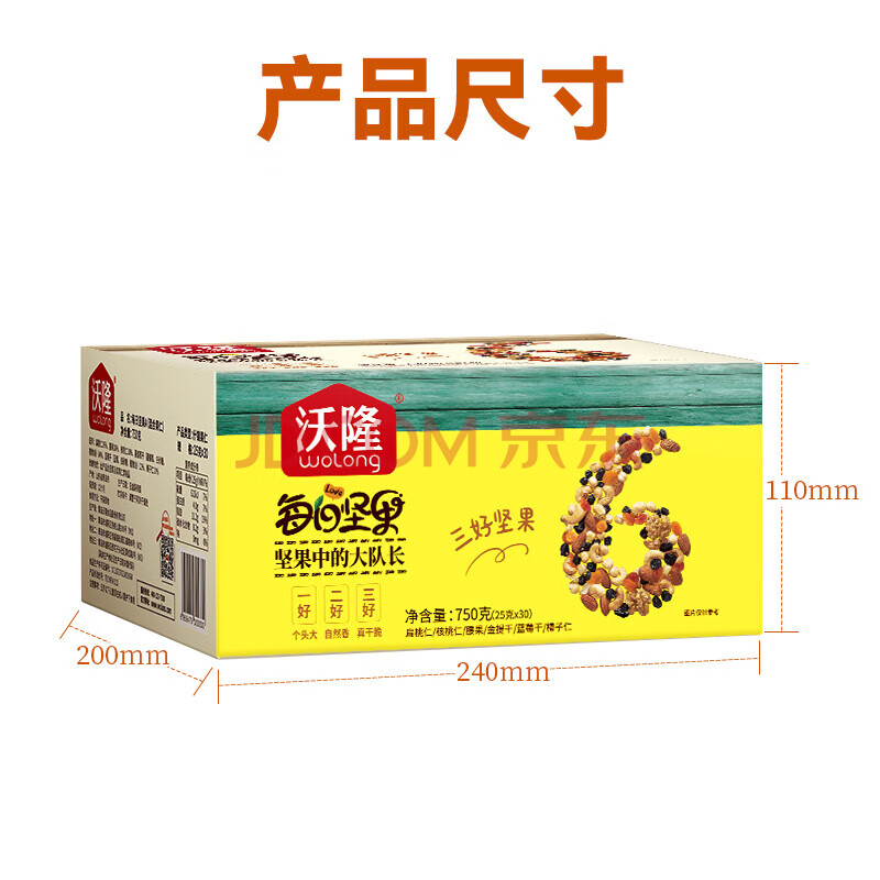 商品相册:沃隆 每日坚果750gAB家庭款(25g*30袋)坚果炒货 混合干果仁零食 第