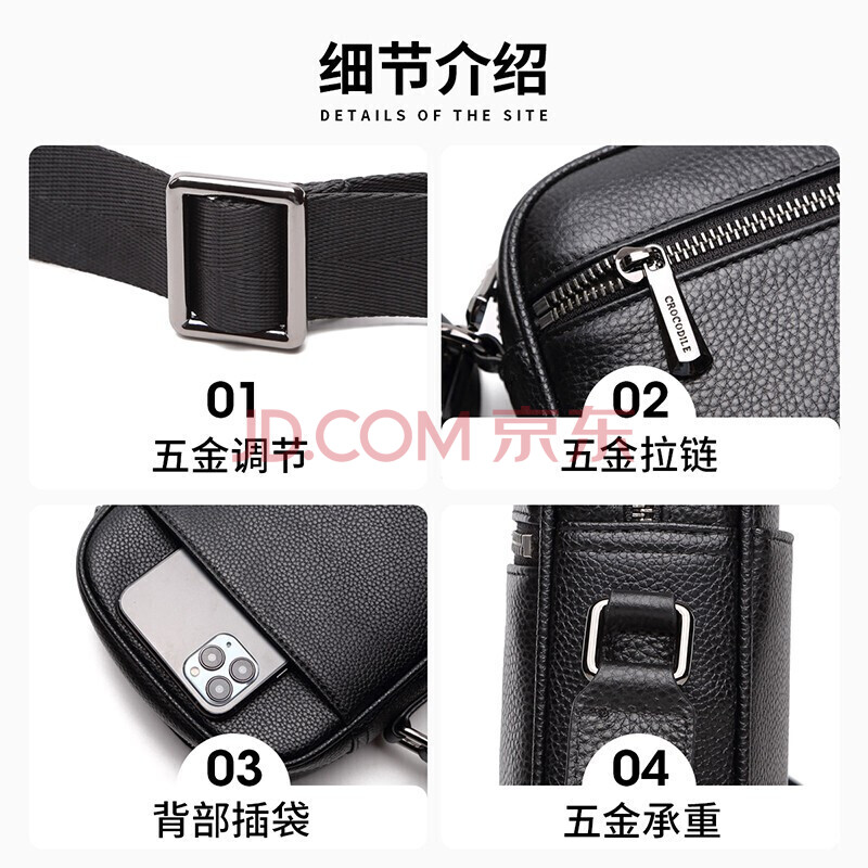 商品相册:鳄鱼恤潮流时尚肩包男包头层牛皮休闲简约小斜挎包包12932送男友第1张/共7