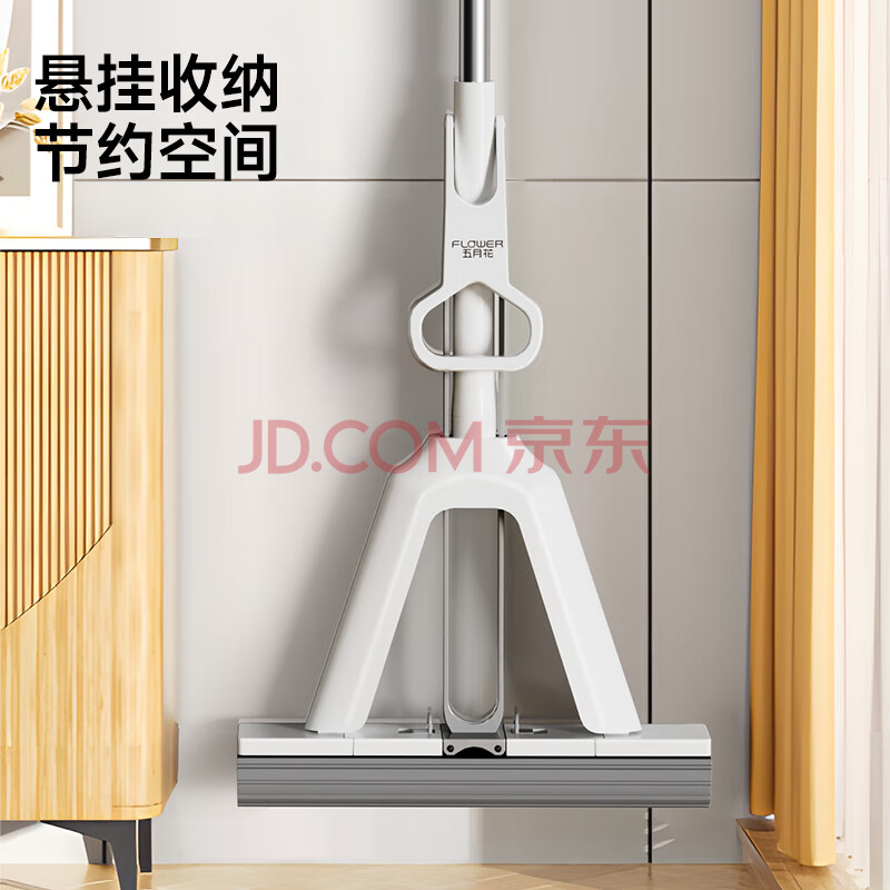 商品相册:五月花海绵拖把38cm共2棉头对折式胶棉拖把免手洗家用懒人海棉拖布第