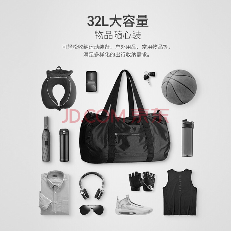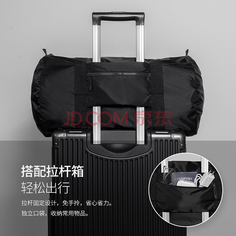 商品相册:pack all旅行包手提式可折叠健身运动包商务差旅大容量行李包 黑色 32L第