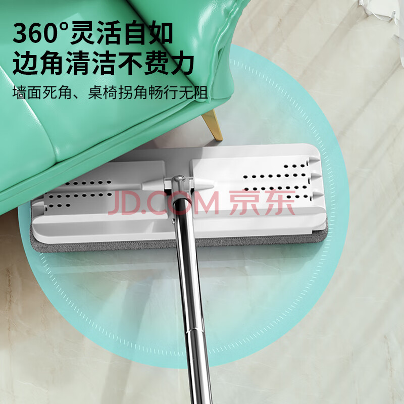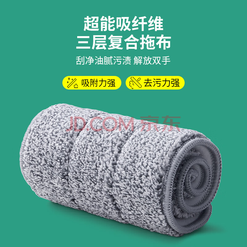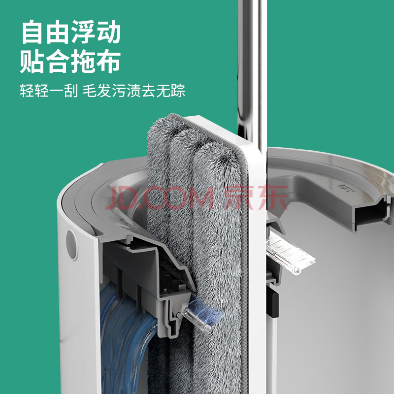 商品相册:博生平板拖把33CM杆长125CM2配布刮刮桶家用一拖净免手洗干湿两用第