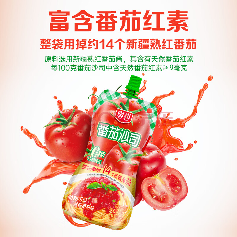 商品相册:厨邦番茄沙司320g 0脂番茄酱 酸甜酱意面披萨手抓饼薯条沙拉酱第