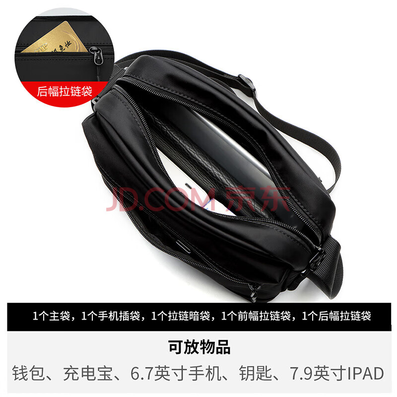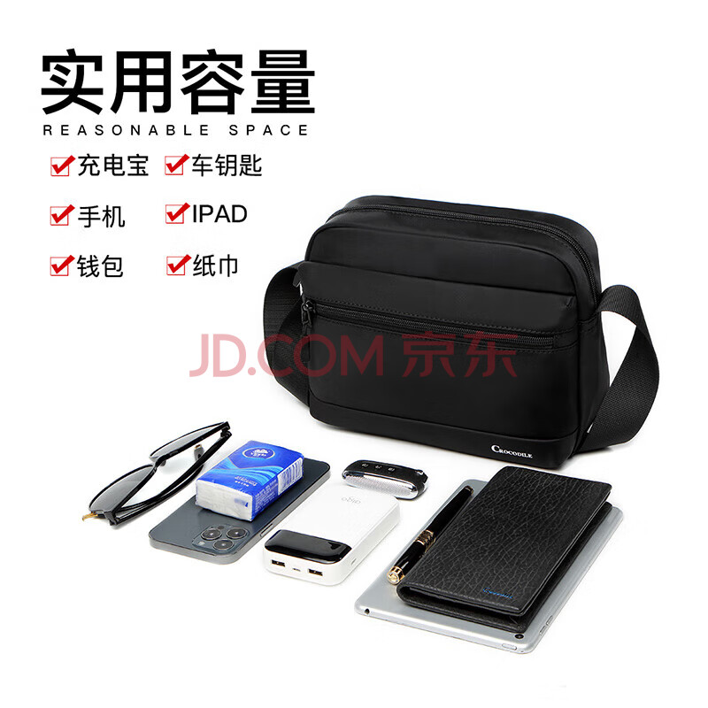 商品相册:鳄鱼恤男士单肩男包包休闲横款斜挎百搭尼龙布包生日礼物B103送男友第